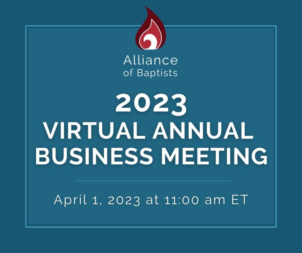 The annual meeting of the Alliance of Baptists is a place and time where your presence and voice help give shape and form to the future of our movement for God’s justice and love! Again this year, the meeting will take place on Zoom two weeks before the Annual Gathering. We invite you to join us on April 1 from 11AM to 2PM to be a part of the conversation and decision-making process and the life of the Alliance. An agenda and business items will be announced at a later date.