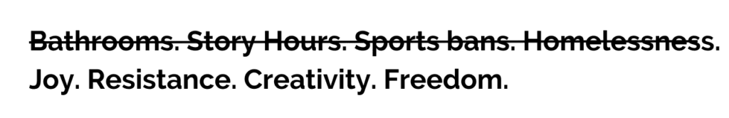 When given the chance to write about the state of trans lives, my mind immediately said, “How does one even begin to write about trans lives when it feels like new attacks are popping up every day?” Then my mind said, “This is an opportunity to celebrate trans joy. Trans resistance. Trans creativity. Trans freedom” and so that is what we shall do!
